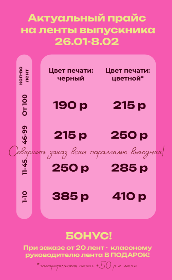 ЛЕНТА КЛАССНОМУ РУКОВОДИТЕЛЮ В ПОДАРОК! ПРИ ЗАКАЗЕ ОТ 20 ЛЕНТ